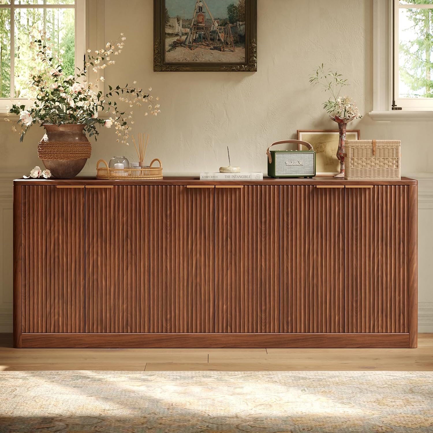 Walnut Finish Fluted Door Console Cabinet Oversized Storage Unit for Dining Room Living Room and Foyer